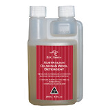 Contains a conditioning agent which replaces oil removed during washing of oilskin and sheepskin and restores the lustre of wool fibre
