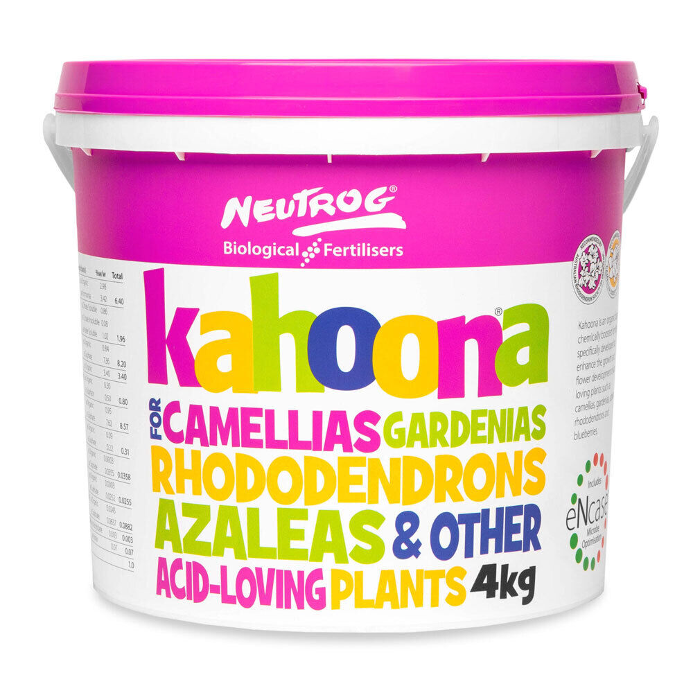 Kahoona is an organic based, chemically boosted fertiliser, specifically developed to enhance the growth and flower development of acid loving plants such as Camellias, Gardenias, Azaleas and Rhododendrons.