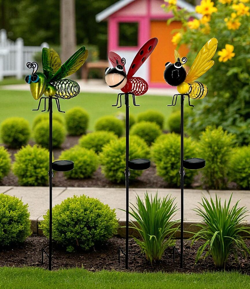 • With bodies that glow at night, this Set of 3 solar lights including bee, ladybug and grasshopper will bring a magical warmth to your garden.