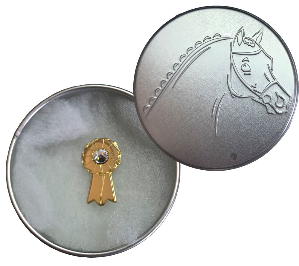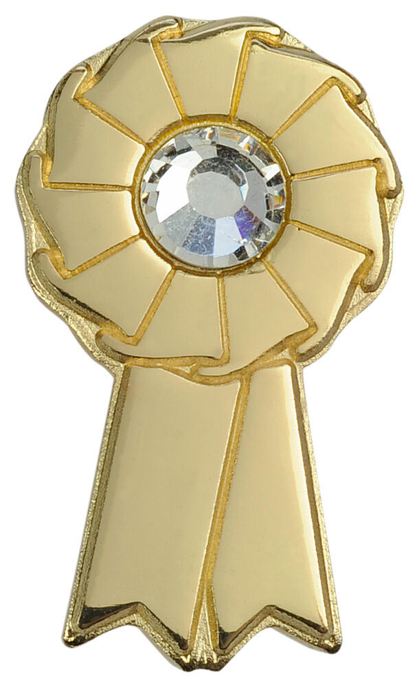 • Gold competition ribbon brooch with crystal feature