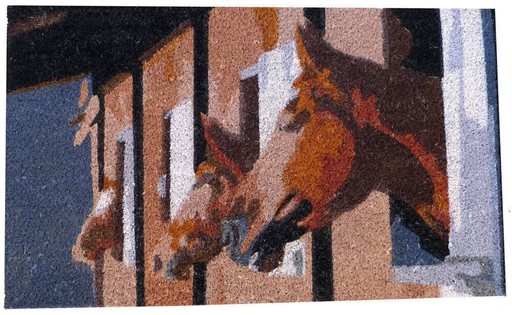 • Brightly coloured coir mats