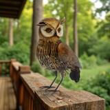 • This handcrafted long-eared owl stands with quiet majesty, its textured plumage and watchful gaze capturing the essence of twilight woodland.