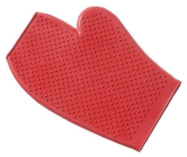 • Fits on the hand for currying legs or sensitive areas of the horse