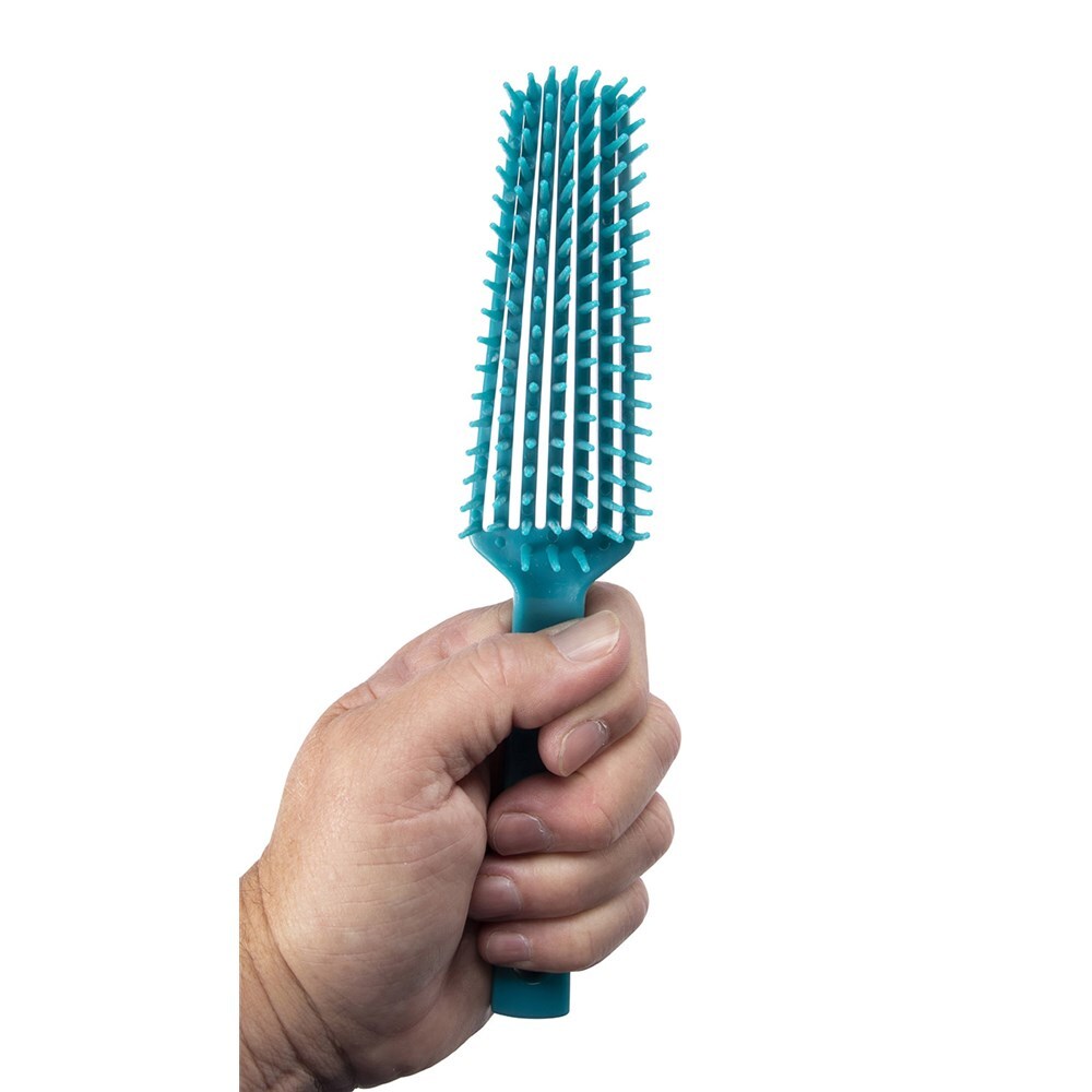 • The Tangle Wrangler Comb's unique design of flexible bristle rows that bend out and snap back allows it to gently loosen knots and reduces pulling of the hair.