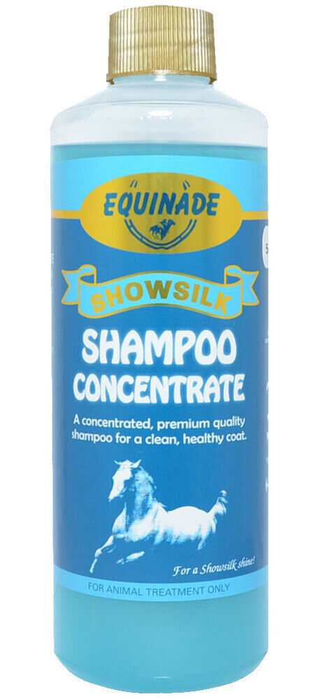 After shampooing, it is important to finish off with a quality conditioner to help prevent the coat from drying and fading and to create a healthy shine. Use the premium quality Equinade Showsilk protein Conditioner to restore the natural acid mantle and add shine to the coat. Showsilk Protein Conditioner is also ideal to untangle knots in manes, tails and long coats.