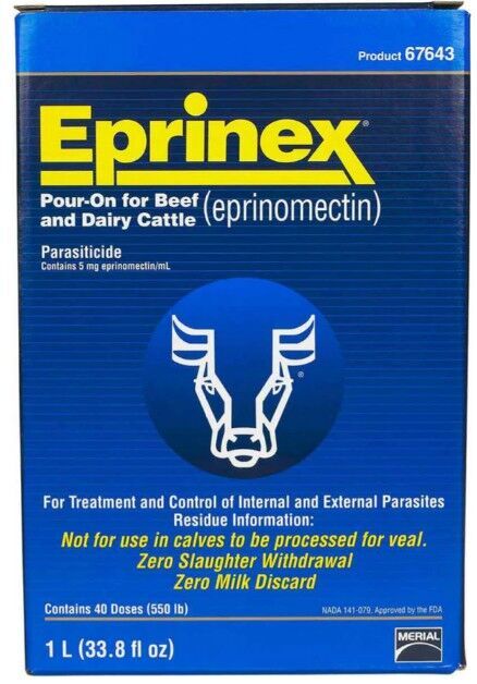 Ivomec Eprinex Pour-On for Beef & Dairy Cattle is for the treatment and control of internal and external parasites of beef and dairy cattle and internal parasites of deer. PRODUCT BENEFITS: The convenience of a broad-spectrum Pour-On. Most potent and fastest acting endectocide available*. Absorbed more rapidly ? faster acting. Sustained activity to kill more species of worms for longer than any other pour-on. No milk or meat withholding period. Zero ESI. No need for protective gear. Completely weatherproof - not just rainfast EPRINOMECTIN POTENCY: Eprinomectin is the most potent endectocide identified to date. PERSISTENT ACTIVITY: EPRINEX has a wide range of persistent activity, and kills more species of worms for longer than any other pour-on available. WITHHOLDING PERIOD: Milk: Nil Meat: Nil ESI (Export Slaughter Interval): Nil DOSE RATE: 1mL for each 10kg of liveweight.