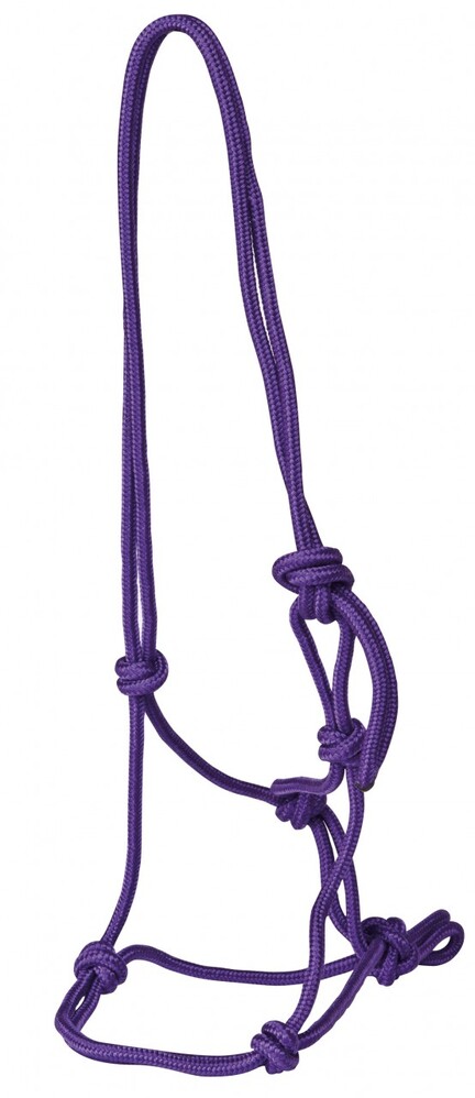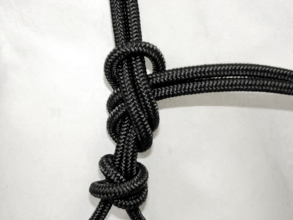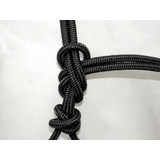 • Knotted rope halter made from a continuous length of braided climber's rope