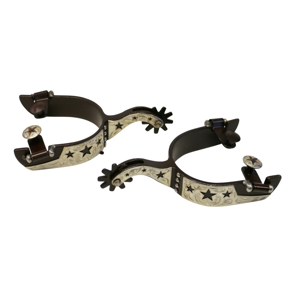 • Fort Worth Black Steel Spurs are made from hand carved German Silver with a 1" Band and a 2¼" Shank.