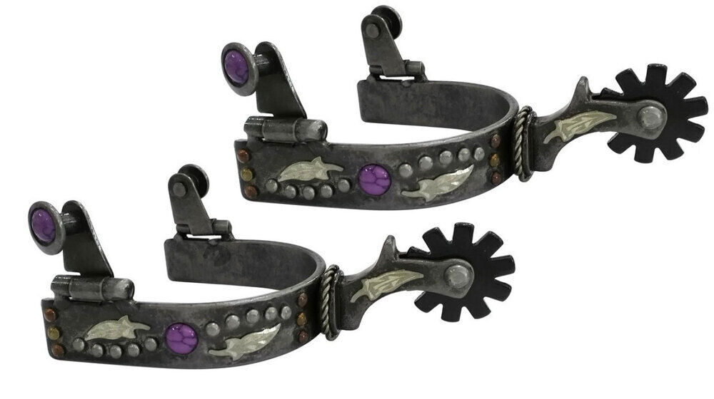 • Purple stones are inset, along with metal dots along the heel band.