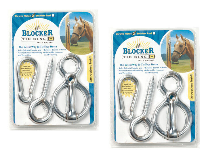 2 x Blocker Tie Ring Ii Chrome With Mag Lock Loc Horse Safety Cross Tie Up