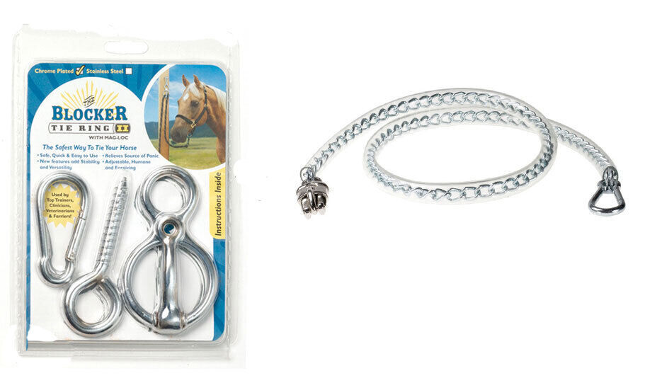 The Blocker Tie-Ring is a unique way to tie a horse securely yet safely. A superb tool for youngsters and for re-training horses who pull back and panic when tied.