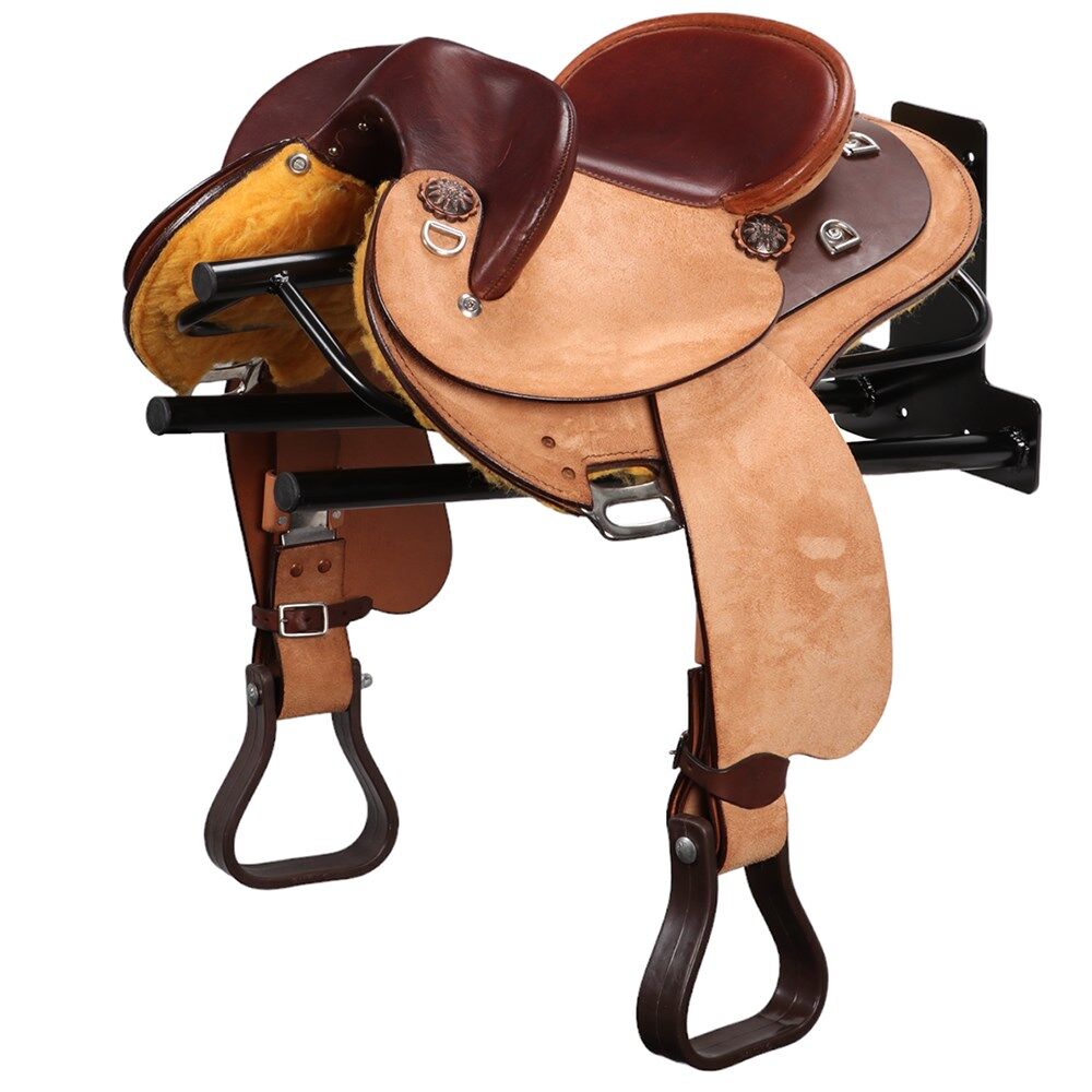 Keep your gear organised and protected with this handy Saddle Rack with Double Saddle Pad Rack. Will hold heavy western or English saddles, thanks to its strong construction.