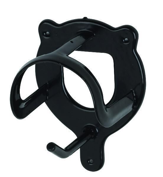 The bridle head sits over the top, and the hook underneath can be used to hold reins, martingales and breastplates.