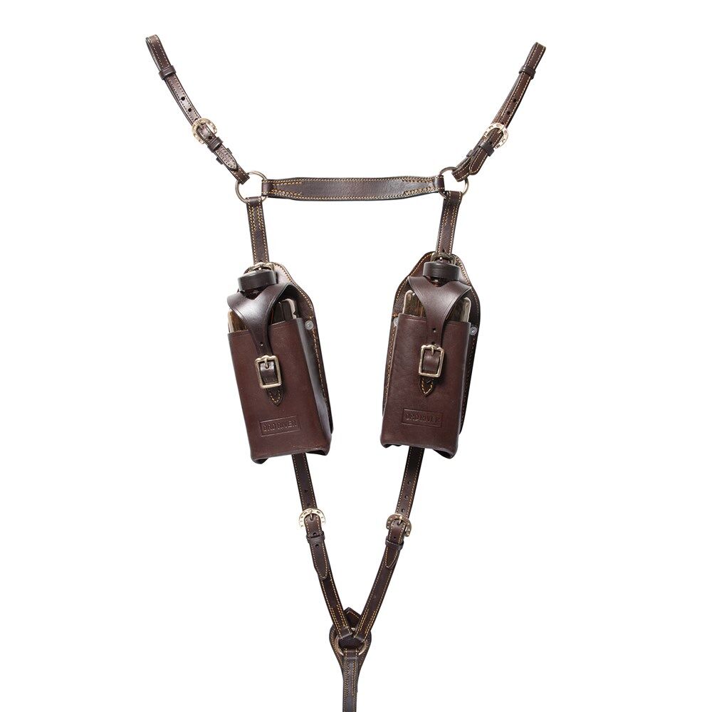 • Adjustable breastplate which is mounted with two pouches to hold water bottles.