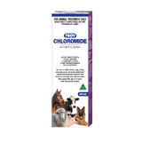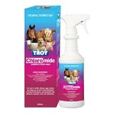 • Troy Chloromide Antiseptic Spray may be used as an aid in the treatment of topical infections and bacterial skin diseases, wounds, cuts and abrasions in cattle, horses, pigs, sheep and dogs. It also repels flied for up to 12 hours from the wound surface.