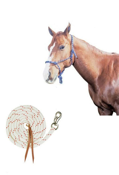 • Knotted rope halter made from a continuous length of braided climber's rope