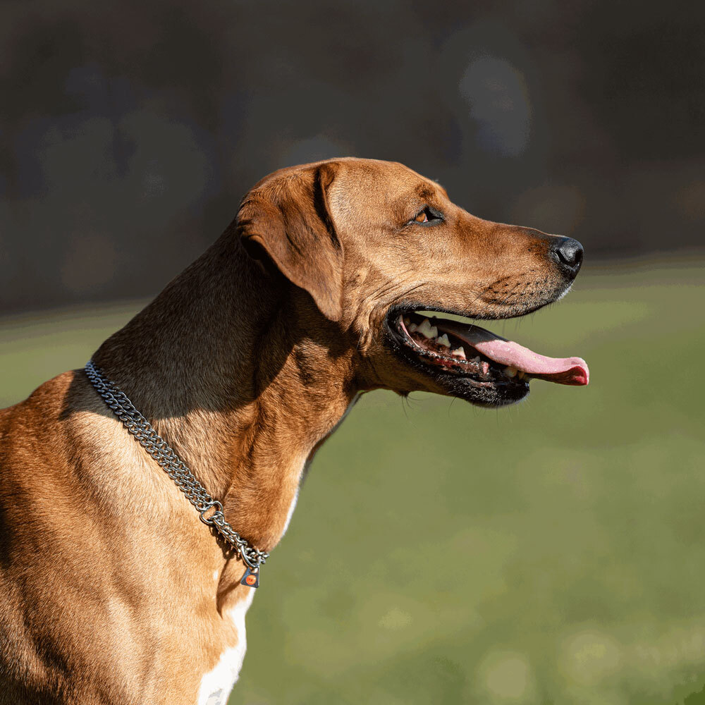 • This collar with limited traction effect and round, flat links is especially suitable for short-haired dogs.