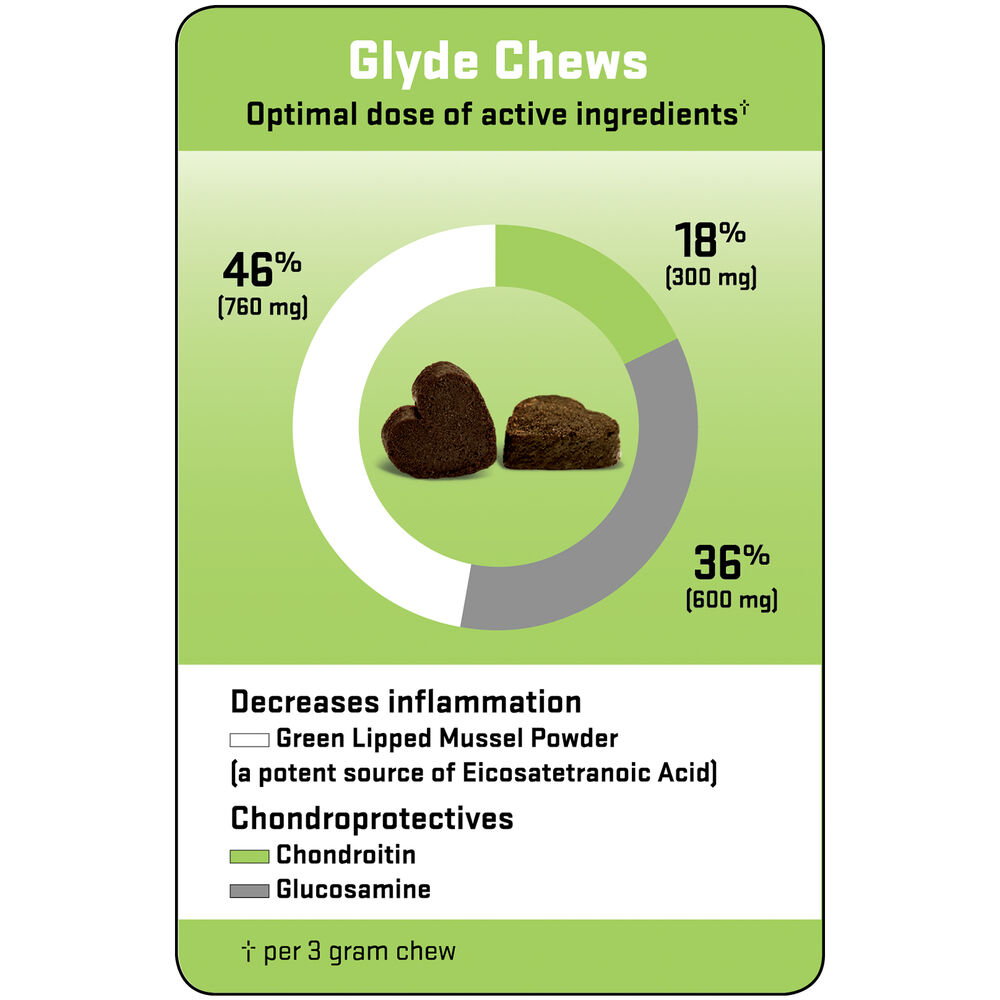 Glyde Mobility Chews for Dogs uses all-natural ingredients to promote healthy joints that let your dog do everything he or she loves to do! Glyde is the only APVMA registered nutraceutical that contains proven level of three key components that work to relieve the painful signs of arthritis.